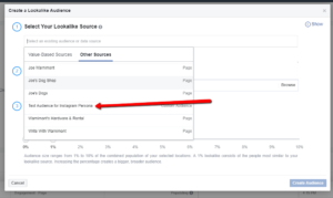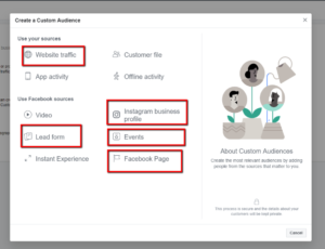 Muista: Facebook suosittelee arvokkaampia tapoja kerätä tietoa yleisölle. Voit esimerkiksi käyttää Facebook Pixeliä tai jopa tuotetietojasi saadaksesi tiettyjä katsojia, joilla on elinikäistä asiakasarvoa. Facebook kutsuu tätä ”arvopohjaisiksi lähteiksi”, ja ne toimivat melko hyvin, jos sinulla on oikeat tietolähteet.