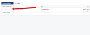 - Luo samankaltainen yleisö: Olemme luoneet mukautetun yleisön . Napsauta nyt Luo yleisö -välilehteä ja valitse samankaltainen yleisö.