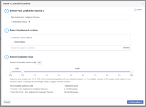 - Siirry sivua alas ja valitse yleisösi sijainti. Lopuksi voit määrittää yleisösi koon. Napsauta sitten Luo yleisö -painiketta.